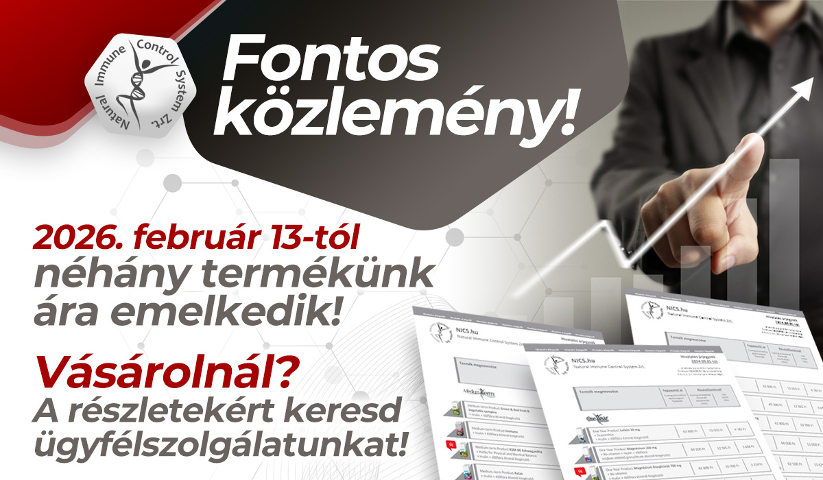 Az alapanyag költségek nagy mértékű emelkedése miatt étrend-kiegészítőink 4 éve változatlan árainak korrigálása szükségessé vált. A megszokott magas minőség, és megbízhatóság fenntartása érdekében az N.I.C.S. Zrt. néhány termék esetében 2026. február 13-tól áremelést jelent be...