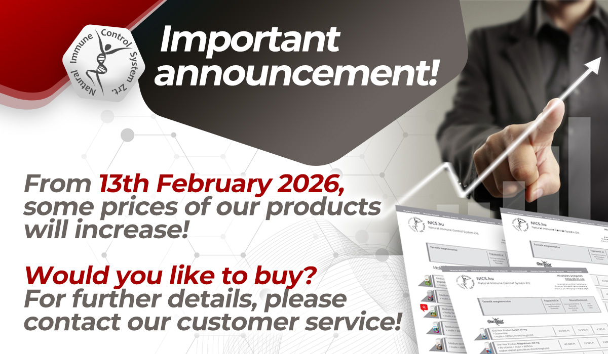 Due to a significant increase in raw material costs, it has become necessary to adjust the prices of our dietary supplement products, which have remained unchanged for the past four years. In order to maintain our permanent high quality and reliability, N.I.C.S. Zrt. announces a price increase for selected products effective from 13th February 2026...